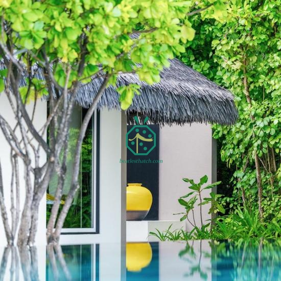 Của chúng tôi thiết kế mái tranh độc đáo Các loại mái che bán ra có khả năng chống gió và mưa, đồng thời cho phép không khí nóng thoát ra ngoài, tạo không gian mát mẻ, râm mát dưới những túp lều tranh của chúng tôi. Nếu bạn có một túp lều tranh, có lẽ nó là một vật dụng quan trọng trong sân nhà bạn. Nếu bạn cần xây dựng một cái mới cấu trúc mái tranh hoặc làm sửa chữa mái tranh Bạn có thể sử dụng ngói giả tranh của chúng tôi để lợp mái hoặc thay thế bất kỳ hư hỏng nào trên cấu trúc gỗ của bạn, và lợp lại mái tranh cho túp lều tranh của bạn bằng sản phẩm của chúng tôi. mái tranh giả nguyên vật liệu.