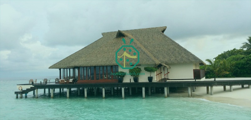 Mái lợp giả lá cọ bán sẵn là sản phẩm có vẻ ngoài tuyệt đẹp dành cho các quốc gia ven biển, hoàn toàn phù hợp để trang trí mái nhà trong công viên giải trí hoặc các công trình che nắng như chòi nghỉ mát, palapa, tiki hut và cottage, v.v. Mái lợp giả lá cọ có thể tạo cảm giác thư giãn cho du khách.